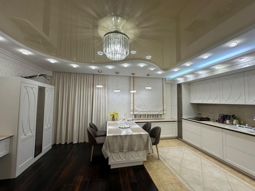 -в квартире выполнен дизайнерский ремонт с применением европейских отделочных материалов премиум сегмента (обои, плитка (коллекционная плитка Версаче), полы (массив дерева), сантехника ведущих производителей (ванна с системой гидромассажа), мебель изготовлена на заказ; под кафелем установлена система теплый пол;