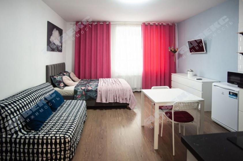 Это классная студия под любые цели: в ней можно комфортно разместиться семьёй из трёх человек или жить в комфорте одному. Оптимальный 16 этаж и лучшая планировка из всех студий: ширина комнаты более 4 метров, а её жилая площадь 21,2 квм, восточная сторона-летом не жарко, роскошный балкон.