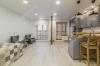 - Квартира полностью готова к проживанию: кухонная зона с продуманным наполнением оборудована современной техникой Bosch - встроенная посудомоечная машина, духовой шкаф, встроенная микроволновка, варочная панель. Удобное спальное место и зона для отдыха с комфортными стильными креслами. Все продумано до мелочей.