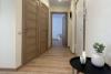 Забудьте о громоздких шкафах: в спальне выделена отдельная закрытая гардеробная, а в прихожей встроен вместительный шкаф до потолка для сезонных вещей.