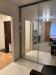 Просторная кухня-гостиная 16 кв. м с современной встроенной кухонной мебелью и шкафом-купе с зеркальными дверями
