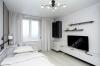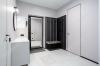 Санузел совмещенный, установлена современная техника: сушильно-стиральная машина, посудомоечная машина и встроенная бытовая техника.