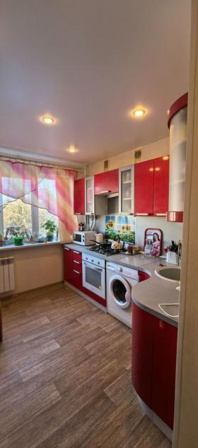 Общая площадь квартиры составляет 52,8 квадратных метра, кухня занимает 9 квадратных метров. Объект находится на четвертом этаже пятиэтажного панельного дома, построенного в 1977 году. В квартире сделан евроремонт, что придает ей современный и ухоженный вид. Планировка двухсторонняя, квартира светлая и теплая, оборудована совмещенным санузлом и застекленной лоджией. Внутри есть гардеробная, а окна выходят во двор, что способствует тишине и уюту. В кухне установлена газовая плита, также в квартире остается мебель как на кухне, так и в жилых комнатах.