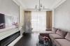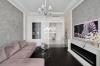 В квартире выполнен дизайнерский ремонт, огромное внимание уделено деталям. Использованы исключительно качественные и дорогостоящие отделочные материалы: на полу - итальянская плитка и инженерная доска, стены - итальянская штукатурка и американские обои Carl Robinson, сантехника европейских производителей, электрика Jung, светильники Eichholtz, Led monster, мебель из массива дерева выполнена на заказ, кухонная столешница и фартук - натуральный кварц, техника премиальных производителей, таких как Neff и Bosh.