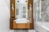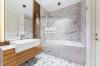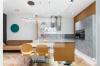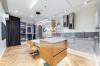 Встроенная кухонная техника от Miele (духовой шкаф, пароварка, подогрев посуды, посудомоечная машина), включая редкий встроенный лавовый гриль с отдельной вытяжкой. •? ?прачечная представлена верхней линейкой Siemens (стиральная и сушильная). Пол - паркет (французская елка), стены - венецианская штукатурка (Италия), двери - массив. Ванная комната оборудована европейской сантехникой Villeroy & Boch, Diravit, Keuco. Кухонный гарнитур от датской компании Bo Concept с использованием натурального дерева и керамики. Мягкая мебель и спальный гарнитур представлена именитыми европейскими производителями Ligne Roset, Walter Knoll и Porada. Системы хранения в спальном гардеробе, детской комнате и прачечной от шведской компании Elfa с возможностью индивидуальной настройки.