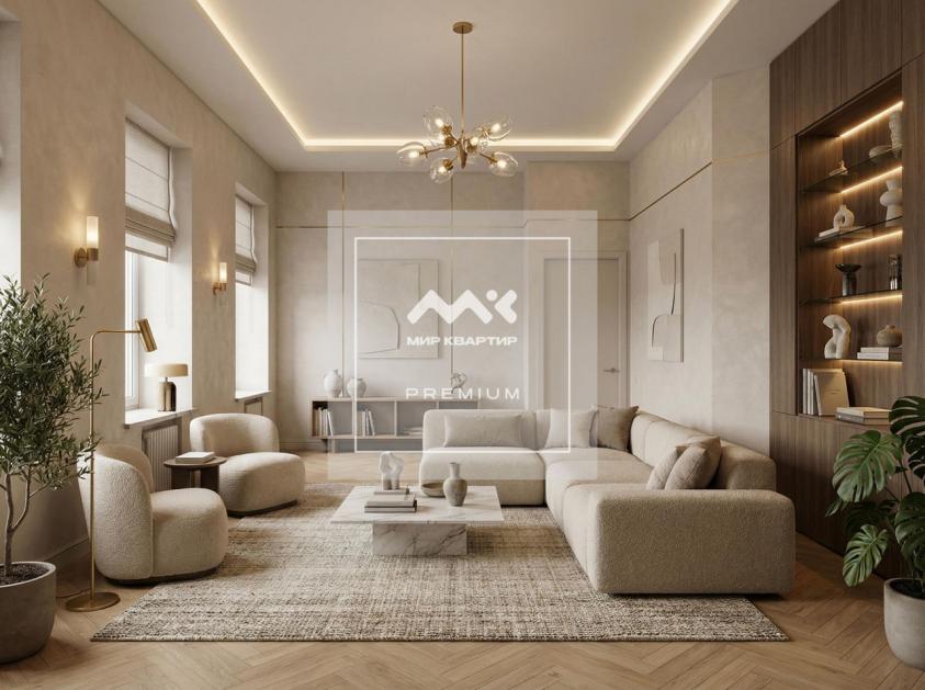 Арт. 127273639 Перспективная просторная квартира с жилым статусом и окнами на зелёный сквер и памятник Александру II.
