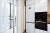 • Вся техника - индукционная плита, духовой шкаф с выдвижными рейлингами, холодильник с двумя зонами свежести, микроволновка без поворотного стола, стиральная машина на 7кг и 1200 оборотов и посудомоечная машины с подсветкой и автоматическим открытием дверки.