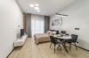 Представьте: приходите в гости, а там — потолки 3,15 метра и огромное панорамное окно в пол. Свет заливает всю комнату, и кажется, что это не 29 м, а настоящие апартаменты в центре европейской столицы. Бело-серый минимализм с последними трендами дизайна — здесь уже всё продумано за Вас.