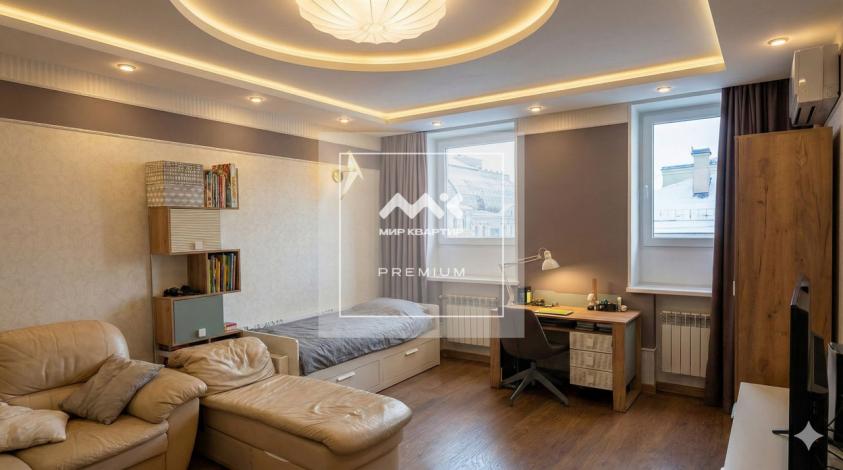ЗОНИРОВАНИЕ ДЛЯ ЖИЗНИ: Спальня (26.4 кв.м.): просторная, правильной геометрии, с видом на купол Исаакиевского собора. Оснащена кондиционером и звукоизоляционными стеклопакетами.