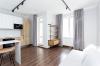 Студия имеет комфортный метраж 26.7м2 + лоджия(не входит в метраж) и правильную форму. Не пенал! Кухня со всей встроенной техникой (холодильник, плита, вытяжка, духовой шкаф, микроволновая печь и посудомоечная машина), столешница и фартук - искусственный камень, стиральная машинка. Вся мебель и техника остается в подарок!