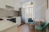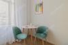 Помещение кухни квадратной формы, что позволяет, с удобством, разместиться на ней семье из четырех человек. Установлен новый эргономичный кухонный гарнитур со всей необходимой встроенной бытовой техникой.