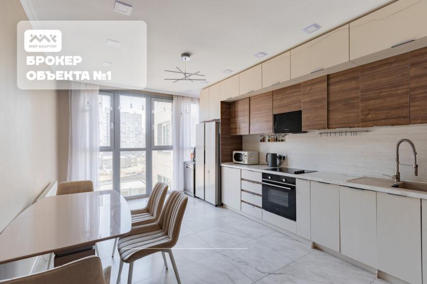 Главные факты о вашей будущей квартире: • Пространство: 93 кв. м чистого комфорта. Большая кухня с панорамным остеклением и светлая гостиная. • Планировка: 2 изолированные спальни, гардеробная комната, 2 полноценных санузла. • Дополнительно: Два просторных балкона, где можно обустроить зону отдыха или рабочий кабинет. • Состояние: Выполнен качественный евроремонт. Вся мебель и техника остаются новым владельцам.