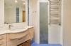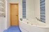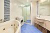 - большая ванная комната с теплыми полами и натяжным потолком, в которой расположились джакузи и душевая кабина, а также отдельный санузел с гигиеническим душем