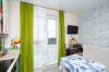 Планировка квартиры включает раздельный санузел и просторный коридор, что позволяет комфортно разместиться 2-3 членам семьи.