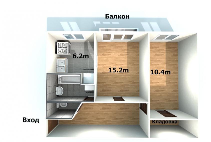 В прямой продаже продается светлая и уютная двухкомнатная квартира в кирпичном доме 1960 года постройки. Общая площадь квартиры составляет 43.2 кв. м, из которых жилая 26.6 кв. м, а кухня 6.2 кв. м. Квартира расположена на 4 этаже 5-этажного дома. Потолки высотой 2.7 метра создают ощущение простора. Окна выходят в зеленый двор, поэтому в квартире всегда тихо и спокойно.