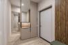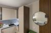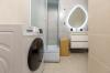 В традициях современного дизайна одна из стен в санузле - акцентная. Стены и пол выдержаны в спокойной гамме. Для отделки полов в комнатах, в коридорах и на кухнях мы используем ламинат 32 класса износостойкости с плинтусами, подобранными в цвет пола. Текстура поверхности ламината делает его почти неотличимым от натуральной древесины.