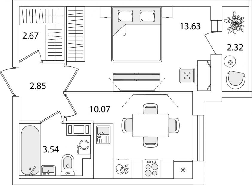 1-комнатная квартира33.9 кв.м.