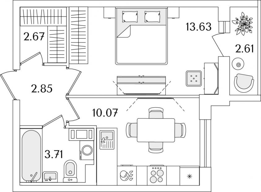 Эта уютная светлая квартира вблизи станции метро Проспект Ветеранов будет сдаваться с черновой отделкой. Общий метраж квартиры составляет 34.2 метра, метраж кухни 10.1м. В квартире будет совмещенный санузел и просторная прихожая. ЖК Кинопарк от застройщика РСТИ будет сдан в II кв. 2026.