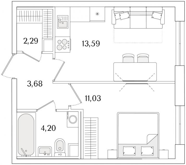 Вашему вниманию предлагается комфортная однокомнатная квартира общей площадью 34.8м, находящаяся на 1 этаже, что удобно как для семей с маленькими детьми и более старшему поколению. В квартире будет выполнена черновая отделка.