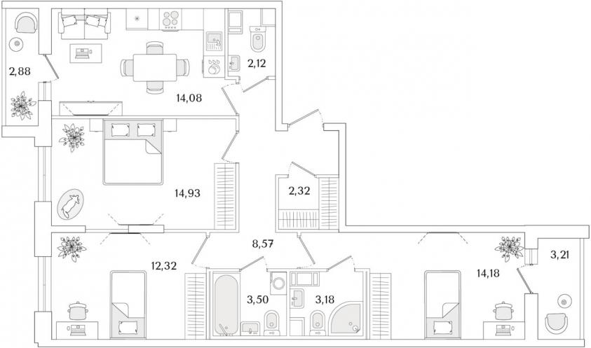 В новом ЖК в кирпично-монолитном доме продается трехкомнатная квартира с уютной кухней 14.1м, где можно сделать удобную эргономичную рабочую зону, а по вечерам это будет место, где с удовольствием будет собираться вся семья. Комфортабельная парадная с просторными лифтами сделает достижение до квартиры своей мечты особенно приятным.