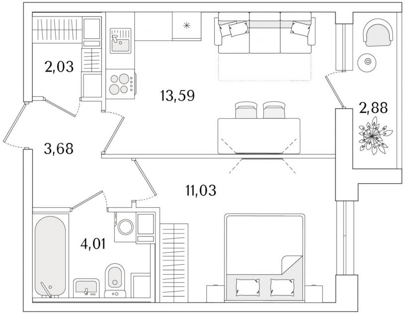 1-комнатная квартира35.8 кв.м.