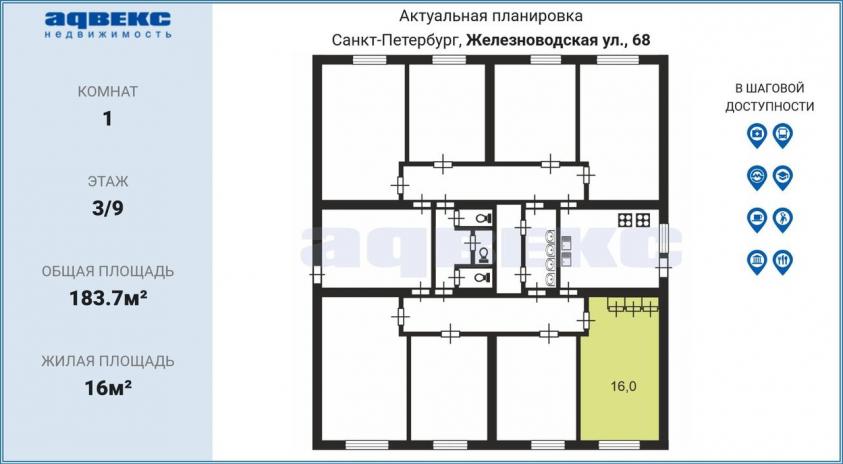 Продаётся комната 16 метров около метро Приморская.