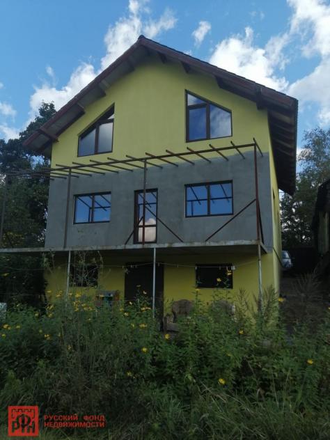 Дом размером 8,8м на 8,15 м, общей площадью 164 кв.м., материал-бетонные блоки, фундамент-плита, крыша-металлочерипица, окна-стеклопакеты, в дом введена вода, канализация-септик, выполнена разводка электропроводки и теплые полы. На первом этаже: бойлерная, кухня, столовая-гостиная , санузел, на втором этаже: 3 комнаты и санузел, цокальный этаж 40 м. С цокаля выход на терассу, с 1 этажа на балкон 2,5м на 8 м. Утепление дома 100 мм с армированной сеткой.