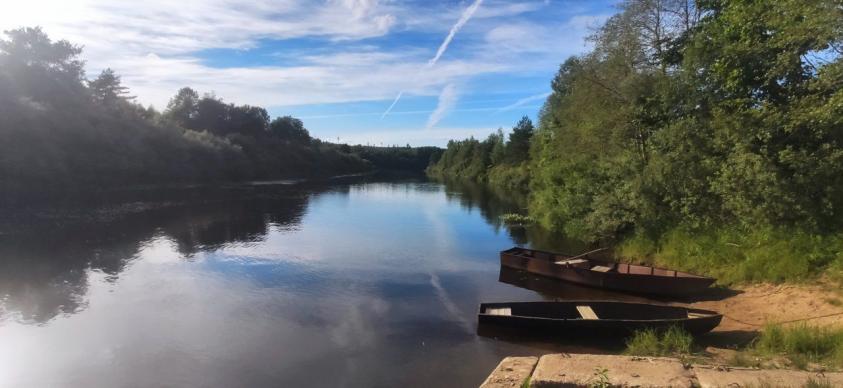 К участку можно добраться через паромную переправу, которая находится в конце деревни.