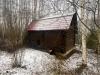 На участке есть сруб бани под крышей из металлочерепицы.