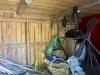 На участке времянка из бревна (гостевой домик) с печкой Буржуйкой