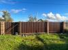 Участок полностью огорожен, по всему его периметру залит ленточный фундамент, в том числе с лицевой стороны установлен забор из профлиста с двухсторонним окрашиванием, есть калитка и откатные ворота с электроприводом. Остальной периметр участка огорожен сеткой рабица. Сделана дренажная система.