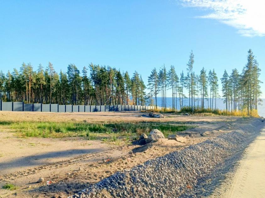 дeтская и cпopтивнaя площадки; своя береговая линия Финского залива. Участок выровнен. Новая актуальная система межевания.