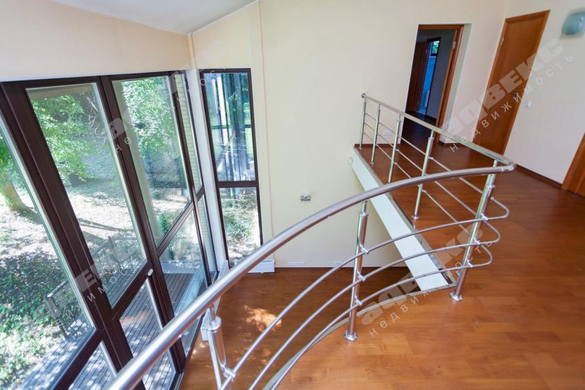 Площадь коттеджа составляет 213.6 кв.м. Участок - 1429 кв.м. Также в собственности подъездная дорога (два участка по 1/9). Дом построен в 2005 году.