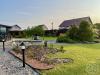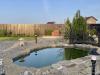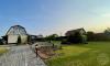 На участке всё продумано до мелочей: установлен хозяйственный блок, зона отдыха с барбекю зоной и небольшим прудо, в конце участка расположена зона огорода с теплицей и грядками. Посажены плодовые и хвойные растения. По периметру установлен забор и сделаны откатные ворота.