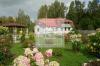 Участок с ландшафтным дизайном, ухоженными клумбами и беседками.