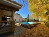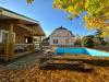 • БАНЯ: 6х7м, из калиброванного бревна диаметром 26см, на ж/б плите, 2014 года постройки. Просторная комната отдыха с печью-камином, помывочная, парная с эксклюзивной печью из карельского мрамора. Подведено холодное водоснабжение, дополнительно установлен бойлер для горячей воды. Крытая веранда с выходом к зоне бассейна (бассейн стационарный, основание и стены из бетона, вкладка из специального прорезиненного материала).