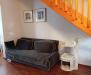 На первом этаже расположена просторная кухня-гостиная с мебелью и бытовой техникой, а так же совмещенный сан/узел с ванной. На втором этаже находятся две спальни, оформленные в мягких, спокойных оттенках. Имеется дополнительное место для хранения в виде мансарды.
