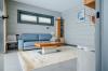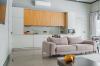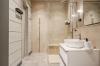 В доме есть мастер-спальня с собственным санузлом, гостевая спальня, кабинет и просторная светлая кухня-гостиная, главным украшением которой является камин с открытым огнем. Гостевой санузел с финской сауной, небольшой, но очень уютной. Просторная котельная, она же постирочная со шкафами для хранения.