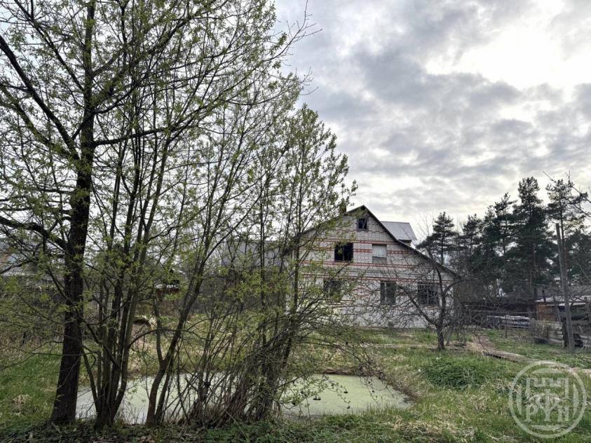 №339762 В тихом и в тоже время в центре Вырицы Гатчинского района Ленинградской области продается жилой дом на участке 11,22 сотки. Дом недострой 2014 года. Фундамент ленточный, стены кирпичные 1,5 кирпича. Есть электричество. Вода из колодца, можно подключиться к магистральному газу. На участке есть ещё небольшое двухэтажное строение, которое можно отреконструировать под гостевой дом. До центра Вырицы 10 минут, до реки Оредеж – 15.