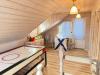 В доме представлено шесть комнат общей жилой площадью 58 кв.м. На первом этаже располагается кухня площадью 14 кв.м с мебелью и встроенной бытовой техникой, прихожая, спальня, гостиная, санузел и терраса. На втором этаже находятся две отдельные спальни, гостиная и санузел, а также открытый балкон с видом на окрестности. Дом предлагается с мебелью и техникой, в том числе кухонным гарнитуром, стиральной и посудомоечной машинами, холодильником и электрокамином.
