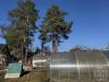 На участке растут плодовые деревья и кусты, а также сосны, создавая приятную атмосферу.