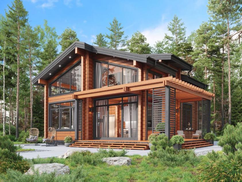 Дом из клееного бруса 200м2, 2х этажный, со вторым светом, 4мя спальнями и большой кухней-гостиной, двумя санузлами. Высота потолков: 1й этаж-2,7м, 2й этажот 1,3м до 3,5м.