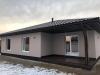 Фундамент- незаглубленная монолитная плита. Стены - газобетон 400 мм d400, утеплены снаружи. Декоративная штукатурка. Крыша металлочерепица. Разводка электрики по дому, стены внутри оштукатурены. Отопление: водяные теплые полы, чистовая стяжка.