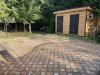 Участок ухожен, ландшафтный дизайн, есть хвойные и другие насаждения, дорожки уложены плиткой, газон, декоративный фонтан, пара грядок.