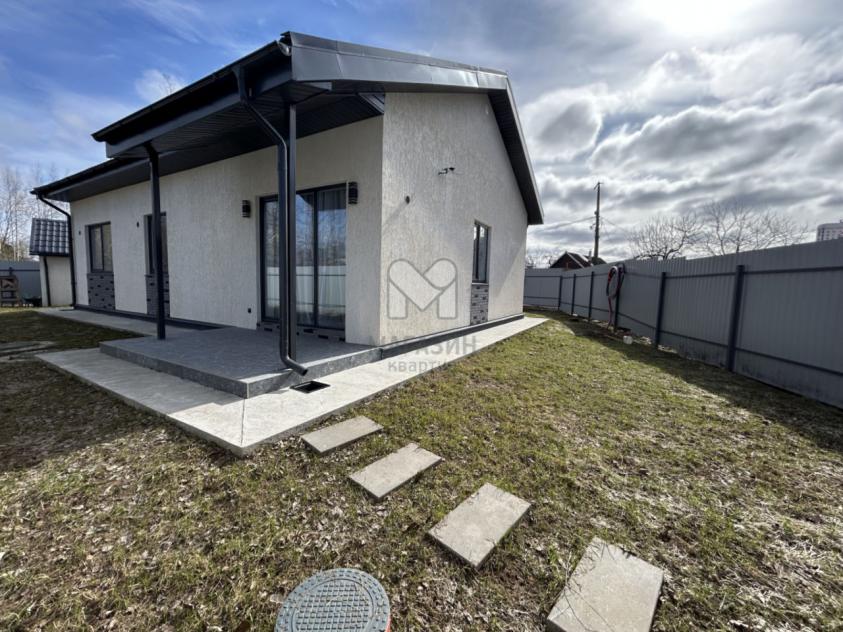 Небольшая прихожая и широкий коридор, светлая и просторная кухня-гостиная с двумя окнами и окном-дверью в пол для выхода на уютную террасу, санузел с душевой кабиной, 3 комнаты и помещение котельной, в которой установлена система водоподготовки, бойлер косвенного нагрева, а также дополнительные унитаз и раковина. Все окна - двухкамерные стеклопакеты с ламинацией. По всему полу в доме теплые полы, в каждой комнате установлены радиаторы. Дом построен на монолитной плите (250 мм) из газоблоков (400 мм), выполнена качественная отмостка, смонтирована водосточная система. Также построен хоз. блок в едином стиле с домом.