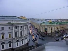 Итак, Гостиный Двор на Невском, 35, – самая ранняя постройка в стиле классицизма в Петербурге. Здание в форме каре, выполненное в железе и камне (во избежание пожаров), строилось почти четверть века – с 1761 по 1785 год. Со стороны Невского проспекта строение было двухэтажным, а со стороны двора – трехэтажным (последний этаж предназначался для хранения товаров). В центре двора был вырыт пруд. Протекавший рядом Глухой проток был засыпан перед началом строительства (ныне это Думская улица). Новый гостиный двор, длина которого по периметру превосходила километр, был назван Большим. По свидетельству современников, этому гостиному двору «обширностью в Европе нет подобных». Впоследствии он стал образцом для других гостиных дворов (рынков, торговых рядов) Петербурга, меньших по площади, но аналогичных по архитектуре: Серебряные ряды, Апраксин двор, Никольский рынок и ряд других построек. Несколькими годами позже напротив нового здания был построен Малый Гостиный Двор, спроектированный архитектором Д. Кваренги и также являющийся памятником классицизма.