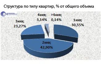 В структуре предложения на вторичном рынке квартир по-прежнему преобладают одно-, двух- и трехкомнатные квартиры, они составили в мае 2014 года 96,7% рынка, многокомнатные (от четырех и более комнат) – в среднем 3,3% от общего объема.