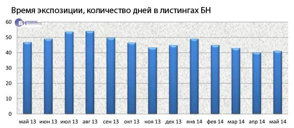 Весной питерским риэлторам действительно удалось ударно поработать. По cведениям Центра исследований и аналитики ГК «Бюллетень Недвижимости», максимальный объем предложения квартир в листингах пришелся на февраль (около 21 тысяч), зато в июне в каталогах «светилось» только 16,9 тысяч квартир (график 2) – на 23% меньше, чем в тот же период прошлого года. Среднее время экспозиции объектов в листинге в мае составляло 41 день (график 3), что заметно ниже, чем в прошлогоднем мае (47 дней).