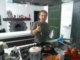 - Веселых историй в процессе ремонта не бывает. Закончил какой-нибудь участок, вот и весело, потому что ремонт это сплошные проблемы. Поскольку все делается сразу, ты одновременно работаешь с сантехниками, кровельщиками, электриками, строителями лестницы, каменщиками, газовщиками и т.д. Потом соседка приходит, кстати, мы же три раза нижних соседей затопили: рабочие случайно открыли кран с горячей водой и забыли…
