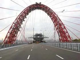 …Сегодня вантовый мост виден из многих точек города. Учитывая его градостроительное значение, разработаны две динамические системы его подсветки: каждодневная и праздничная. Тысячи светильников высветят каждый из 72 вантов, ажурную арку и чудо-ресторан в московском небе.